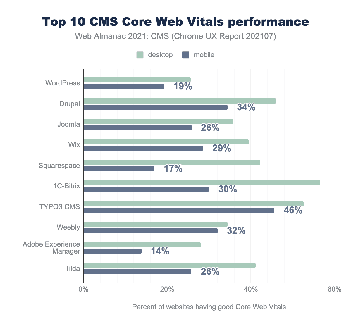 Figure 16.8. Top 10 CMSs core web vitals performance.
