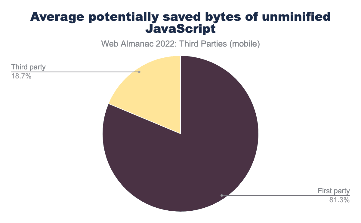 Minifying scripts should have a large positive impact as they are the most popular third-party content type. Moreover, compared to other content types like CSS, scripts tend to be a lot more verbose, with comments and large variable names that affect the file size.