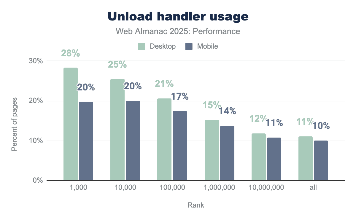 Figure 7.21. Unload handler usage by website rank and device (2025)